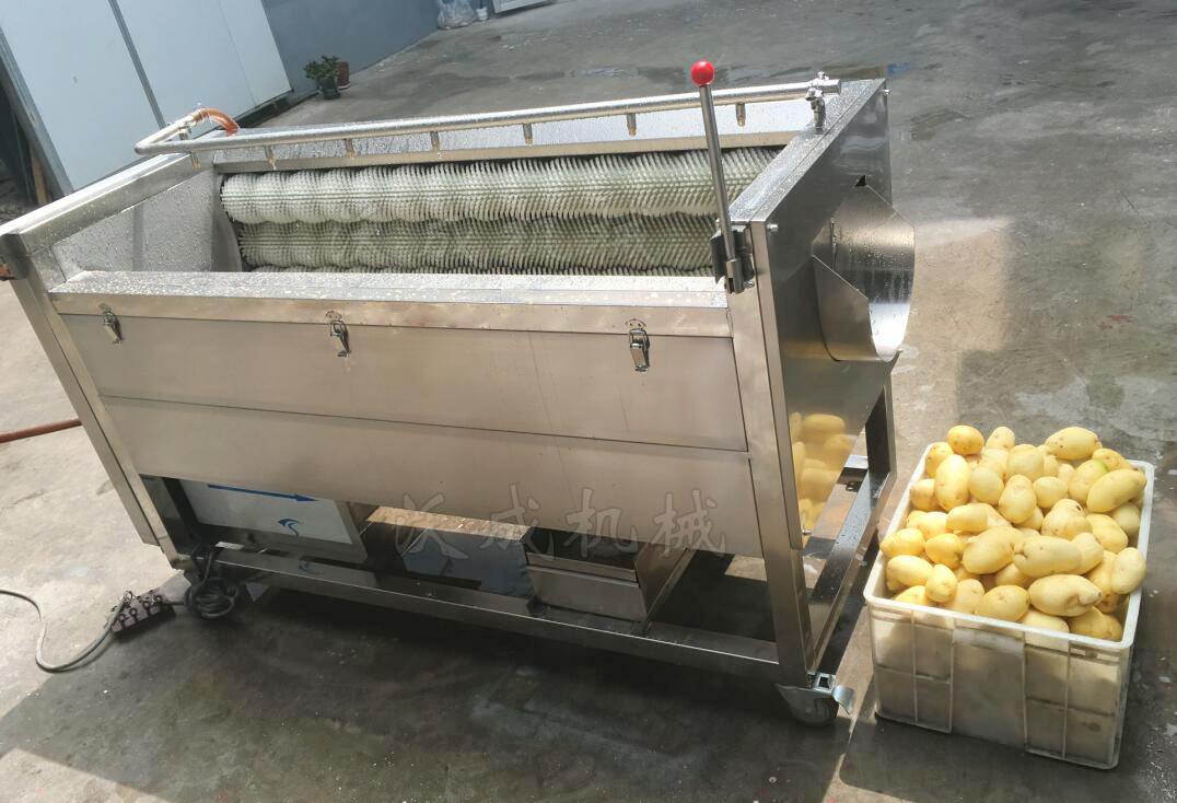 土豆清洗去皮机,莲藕清洗去皮机,红薯/地瓜清洗去皮机,萝卜清洗机, 芋头清洗机, 部分水果清洗,材质:整机全不锈钢材质,毛刷分硬毛刷和软毛刷。